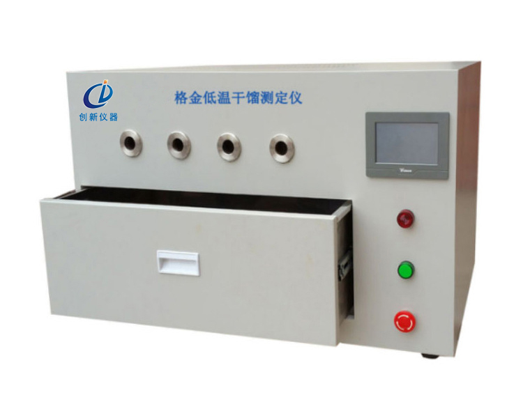 格金低溫干餾試驗(yàn)是一個格金低溫干餾試驗(yàn)是一個多指標(biāo)的綜合性試驗(yàn),既有結(jié)焦性指標(biāo)焦型的判定,又有干餾產(chǎn)物半焦產(chǎn)率、焦油產(chǎn)率和總水產(chǎn)率的測定。根據(jù)GB/T1341《煤的格金低溫干餾試驗(yàn)方法》格金低溫干餾試驗(yàn)的基本原理是將一定量的煤樣放在玻璃干餾管中,送入預(yù)升到300℃的干餾爐內(nèi),以5℃/min的升溫速度隔絕空氣加熱,干餾溫度 300-600℃,并且保溫15min, 測量半焦產(chǎn)率、焦油產(chǎn)率和總水產(chǎn)率,同時將半焦與標(biāo)準(zhǔn)中的焦型比較確定它的焦型。